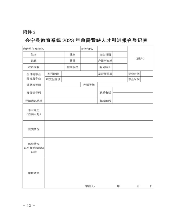 2.2023年会宁县教育系统急需紧缺人才引进报名表