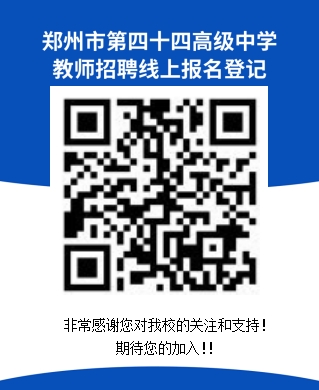郑州市第四十四高级中学创建于1973年,是郑州市教育局直属学校,郑州市示范性高中。学校现有26个教学班,在校学生1400余人,教职工110余人。学校是国家级示范家长学校、河南省文明校园、河南省平安校园、河南省师德师风先进校、河南省中小学德育工作先进集体,学校连年被评为郑州市普通高中教学创新先进单位、郑州市普通中小学德育创新先进集体,郑州市多样化发展示范校、郑州市课程建设先进单位、郑州市校本课程建设先进单位、郑州市美育示范校、郑州市创客教育示范校,教育教学质量在郑州同级同类学校中名列前茅。投资近3亿元占地90亩的新校区已投入使用,招生规模逐步扩大,开启了与郑州一中融合发展的新模式,学校进入跨越式发展的新航道。