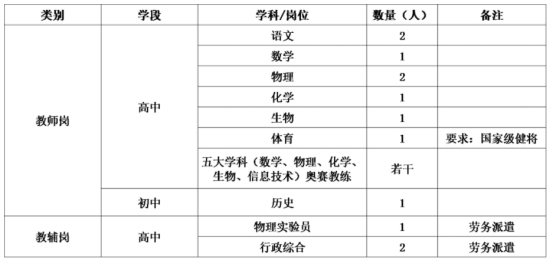 5.除特殊说明外,应届毕业生需具备硕士及以上学历(清华北大本科即可;应聘初中教师者,优秀的公费师范生亦可考虑),在校学习成绩优秀,有学生干部经历者优先;在职教师需具备硕士及以上学历,要求在中学有三年及以上的任教经历,具备中级及以上职称。