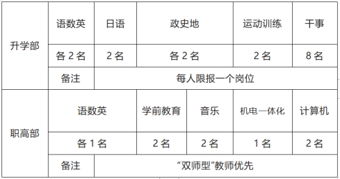 有五年以上教学经验,教学和教育科研能力强,有团队协作精神,敬业爱生。优秀班主任、教学能手、名 师、学科带头人优先考虑。民办学校任教、带班三年以上者优先考虑。