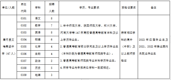 唐河县文峰高中2023年校园招聘教师公告