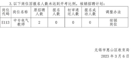 2023年无锡市惠山区教育局第二次选聘优秀青年人才招聘计划调整公告
