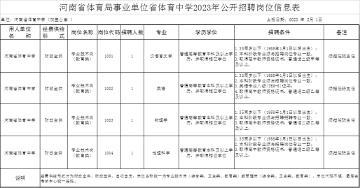 详见附件《河南省体育中学2023年公开招聘工作人员一览表》。