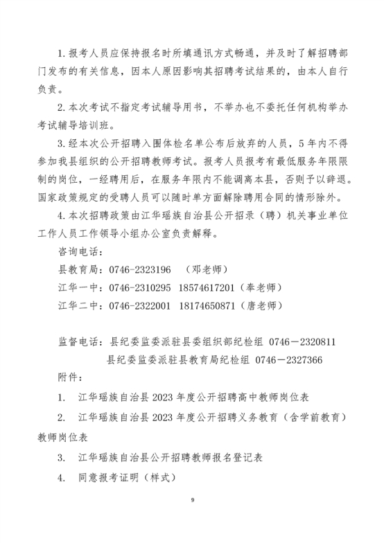 附件:1.江华瑶族自治县2023年度公开招聘高中教师岗位表.xls