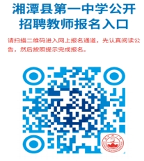 应聘人员在报名时间内扫上方“湘潭县第一中学公开招聘教师报名入口”二维码,下载并填报《湘潭县第一中学2023年公开招聘教师报名登记表》(详见附件4,以下简称“《报名登记表》”)后,再在报名系统中完成报名。
