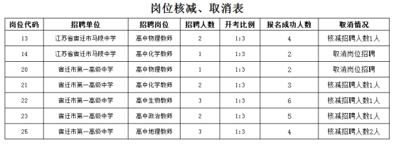 2023年宿迁市教育局直属学校第一批公开招聘教师岗位核减、取消公告