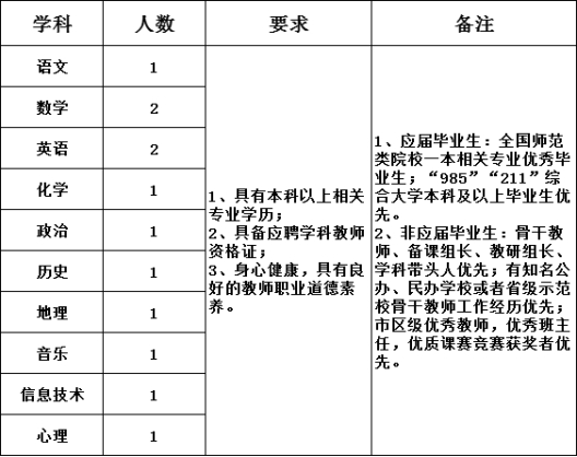 学校各类教学设备配置达到云南省二级一等完全中学标准,教室全部配齐多媒体教学设备,教学、体育、艺术各种功能场室齐全。学校现有学生1300人,教职工100人,其中高级教师占比达到30%。现因学校发展需要,面向社会公开招聘大学本科以上的初高中教师,有关事宜公告如下: