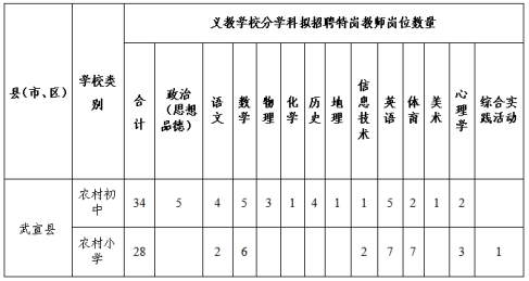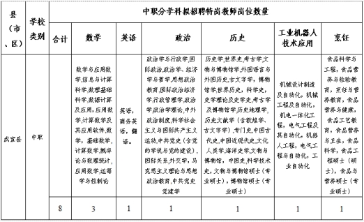 共招聘特岗教师70名,其中:初中34名,小学28名,中职8名。具体岗位招聘计划详见如下表: