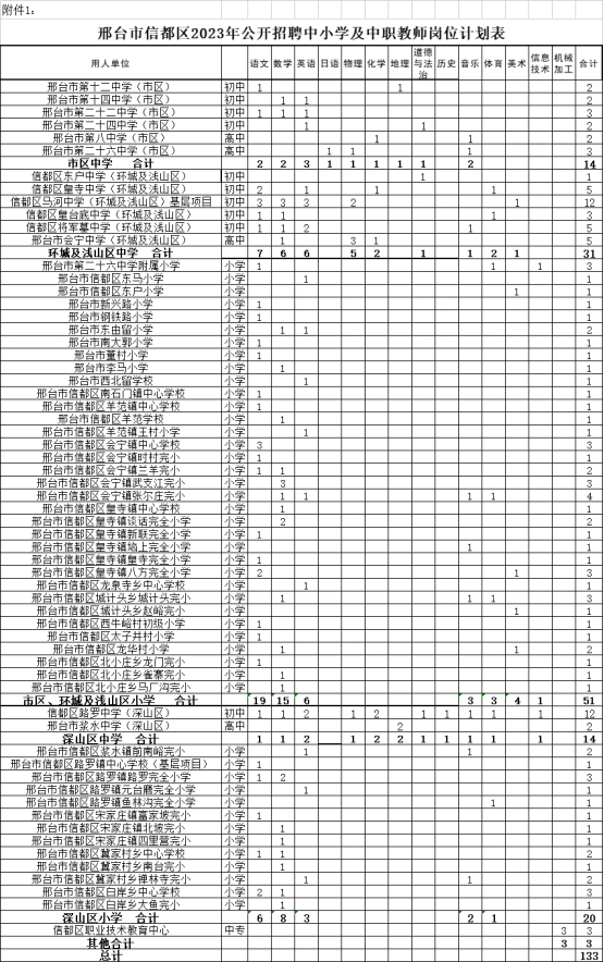 1.《邢台市信都区2023年公开招聘中小学及中职教师岗位计划表》