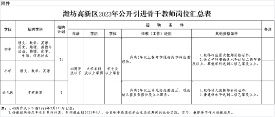 附件:潍坊高新区2023年公开引进骨干教师岗位汇总表