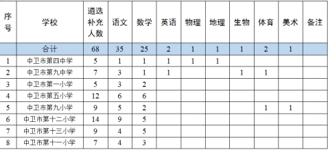 8月5日(星期六),在中卫十二小组织遴选教师面试。面试成绩满分为100分,划定60分为最低录取分数线。