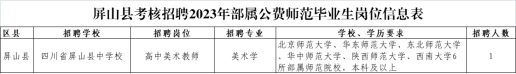 根据《四川省教育厅 四川省人力资源和社会保障厅 中共四川省委机构编制委员会办公室 四川省财政厅 关于转发〈教育部直属师范大学免费师范毕业生就业实施办法〉的通知》精神,按照市教育体育局工作要求,为做好我县2023年部属公费师范毕业生考核招聘工作,现将相关事项公告如下。