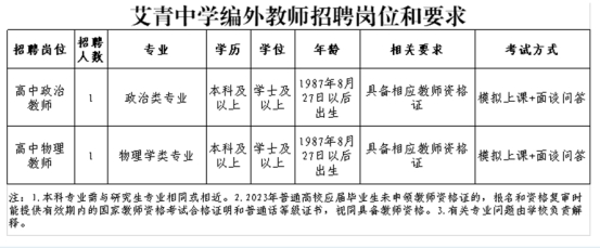 因学校工作需要,现向社会招聘编外教师2名,具体事项公告如下: