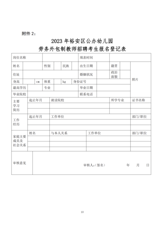 (1)本人签名确认的《2023年裕安区公办幼儿园劳务外包制教师招聘考生报名登记表》(附件2);