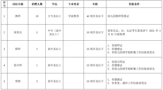 本次共招聘21名劳动合同制教职员工,具体岗位信息见《未来之星幼儿园教职员工人员岗位计划表》附件1