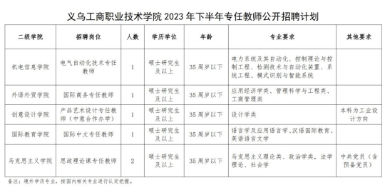 详见人事处网站义乌工商职业技术学院2023年下半年专任教师公开招聘公告。