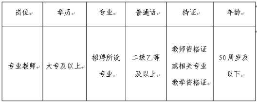 合计招聘专业教师7名,其中葫芦丝教师1名、吉他教师1名、美术教师1名、古筝教师1名、舞蹈教师1名、管乐教师1名、象棋或围棋教师1人。