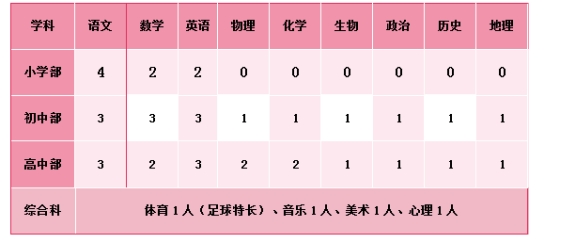 (4)有班主任工作经验、能辅导学科竞赛、具有课程开发能力、学科双语教学能力者优先。