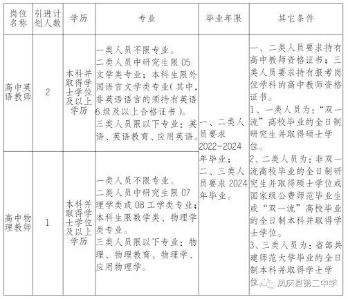 拟引进普通高中教师3人。高中英语2人,高中物理1人。具体如下: