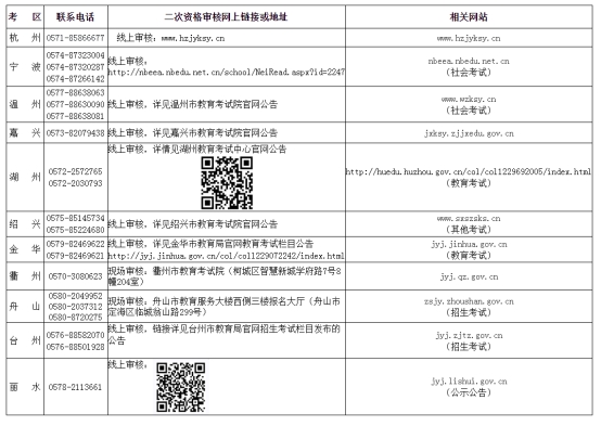 有关中小学教师资格考试的其他信息,如《考试标准》和《考试大纲》等,可登录教育部中小学教师资格考试网站(ntce.neea.edu.cn)了解,也可通过浙江省教育考试院咨询电话(0571-96399)及各考区公布的电话咨询。