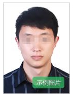 上传照片要求:本人近6个月以内的免冠、正面、彩色、白底证件照,照片中显示考生头部和肩的上部,不允许戴帽子、头巾、发带、墨镜;照片格式及大小:JPG/JPEG格式,不大于200K。照片示范图如下:
