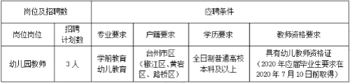 黄岩区机关幼儿园2020公开招聘教师岗位及条件
