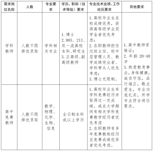 1.博士:专业不限,学校聘为首席专家,提供三年免费住宿及一次性安家费,年薪可达30万且上不封顶。