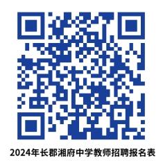 1.报名方式:电子邮箱报名。报名时应聘者填写《2024年长沙市长郡湘府中学教师招聘报名登记表》(点击二维码下载),把身份证、学历证、学位证、教师资格证、普通话等级证及其他相关资料的扫描件打包压缩命名为“科目+姓名”,(报名表不压缩,单独发送)一起发送到邮箱:xfbgs520@163.com。