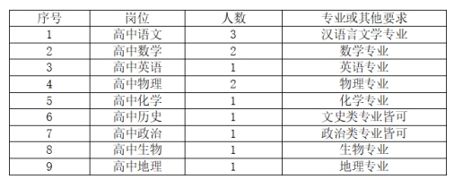 附:根据情况适当招聘初中物理、政治等学科优秀教师