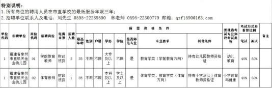 (一)本次招聘公告通过泉州市妇联网站、微信公众号,泉州市教育局网站、泉州市直机关金山幼儿园微信公众号以及福建省事业单位公开招聘服务平台(http://220.160.53.33:8903/home)发布。招聘后续相关信息,报考人员应及时关注招聘单位网站或公众号相关信息,了解最新考试相关信息。报考人员在招聘过程中如有招聘岗位有关信息、招聘进展情况咨询,请联系招聘主管部门或招聘单位,联系电话详见网站发布的《2024年泉州市直机关金山幼儿园公开招聘编制内新任教师岗位信息表》。