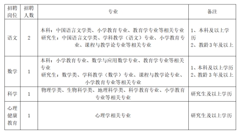 本次面向社会公开招聘小学教师,具体要求及名额如下: