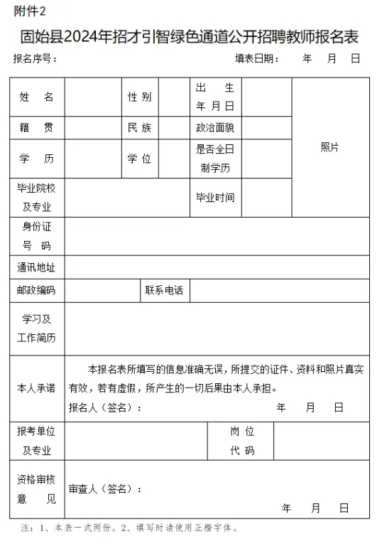 2.固始县2024年招才引智绿色通道公开招聘教师报名登记表