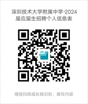 符合招聘条件且有意向的应聘者请将报名材料做成一个PDF文件发送至我校招聘邮箱sjdfz@139.com,邮箱标题及文件命名格式为:报名岗位+毕业院校+姓名(例:高中语文岗位-XX大学-李XX)。并扫描下方二维码同步填写报名信息:
