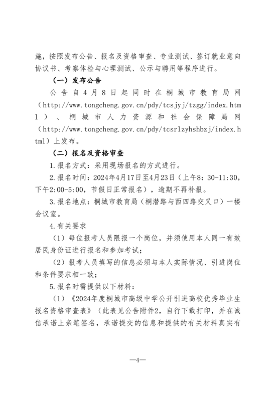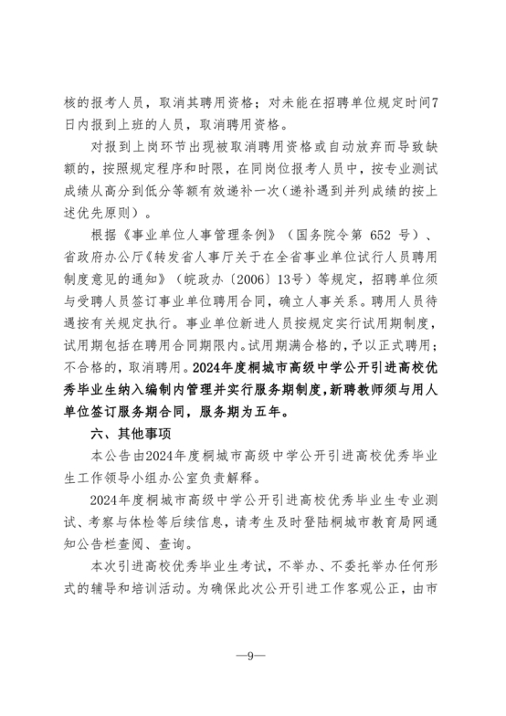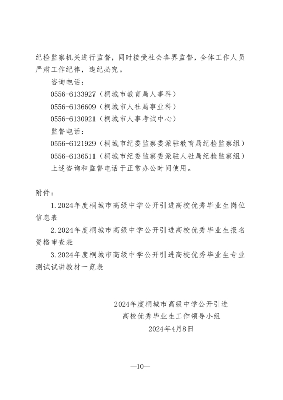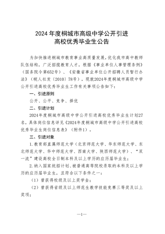 附件1:2024年度桐城市高级中学公开引进高校优秀毕业生岗位信息表.xls
