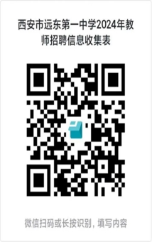 应聘人员扫描二维码在线填写《教师招聘信息登记表》,同时把以下材料电子版或扫描件压缩打包命名为“姓名+应聘岗位+联系方式”,发送至邮箱:xaydyzjwc@163.com。