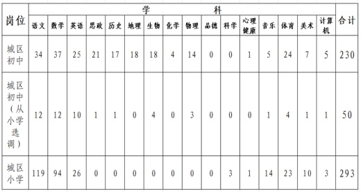 1.根据县委编办对城区中小学校核定教师编制数和城区新增学位需求情况,分学科但不分学校从全县符合条件的乡镇中小学教师中选调。