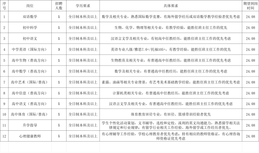 各级各类教育教学评比荣誉获得者、有班主任工作经验者、具有国际化学校教育教学经历者、有海外学习背景者优先。