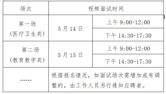 符合岗位条件的考生,免笔试,直接进行面试。面试采取视频面谈测评的方法,主要测评考生的专业知识和综合分析、临场应变、组织协调等能力,测评成绩分为优秀、良好、一般三个等次。