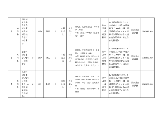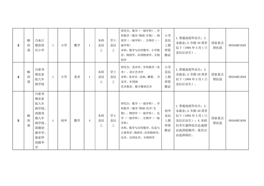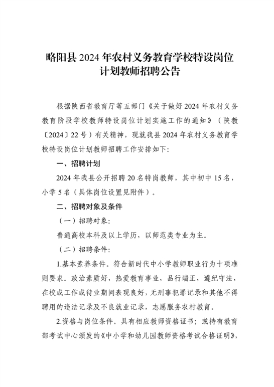 陕西省汉中市略阳县2024年特岗教师招聘公告(20名)