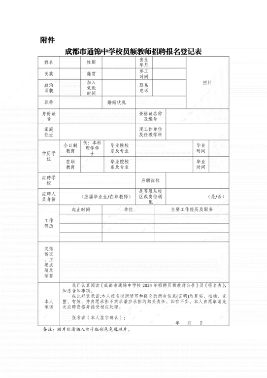 附件:成都市通锦中学校应聘教师基本情况登记表