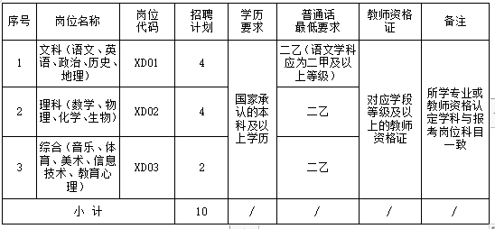 本次选调计划数为10名,选调教师全部安排在我市乡村学校任教。分为文科组、理科组、综合组三个类别,每个类别选调计划分别为4、4、2名。具体岗位见下表: