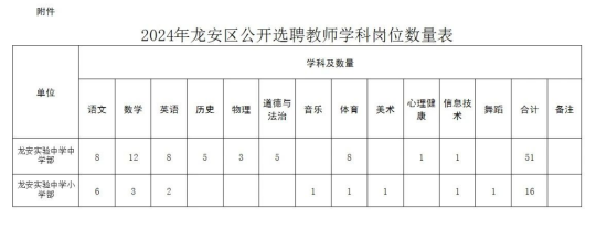 附件:《2024年龙安区公开选聘教师学科岗位数量表》