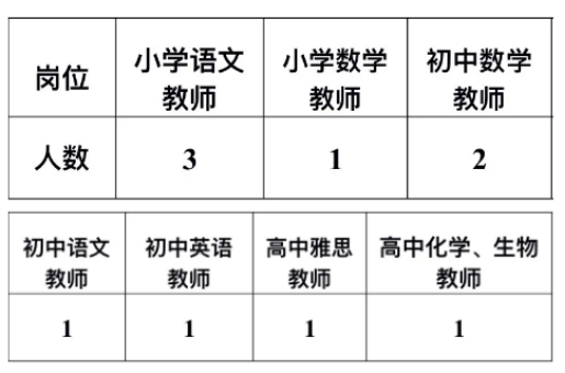 2.高中化学、生物教师要求:大学本科或以上,扎实的化学、生物专业功底,大学期间成绩优秀;大学英语六级以上,雅思6.5分以上或同等条件者优先;拥有至少3年或以上的高中化学、生物教学经验,有国际课程教学经验者优先;高中化学或生物教师资格证(必备);