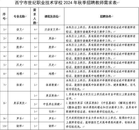 西宁市世纪职业技术学校面向社会公开招聘编外教师公告