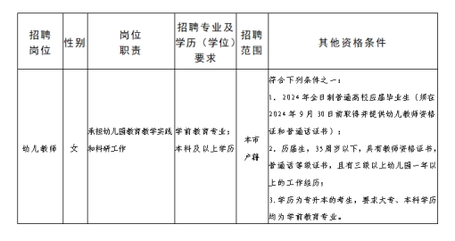 一、招聘岗位:幼儿教师