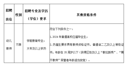 注:年龄和工作经历截止时间为公告发布之日。属于2024年应届毕业的,须在2024年9月30日前取得并提供学历证书、普通话证书。并需在2024年12月30日之前取得教师资格证书或完成教师资格认定。