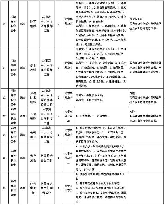2024年天津青年职业高中面向社会公开招聘教师岗位计划表