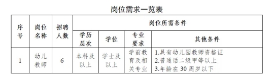 此次招聘采用“先面试、后笔试”的程序。招聘合同制幼儿教师 6人,具体要求详见岗位需求一览表。