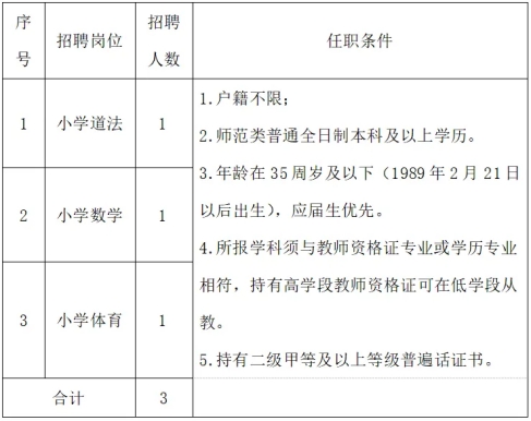 4、具有引才岗位所需的学历、专业和技能条件。本次引才中小学教师学历为全日制师范类本科及以上,已取得教师资格证、普通话二级甲等及以上;