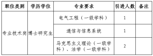 根据工作需要,引进高层次人才4名。具体要求如下: